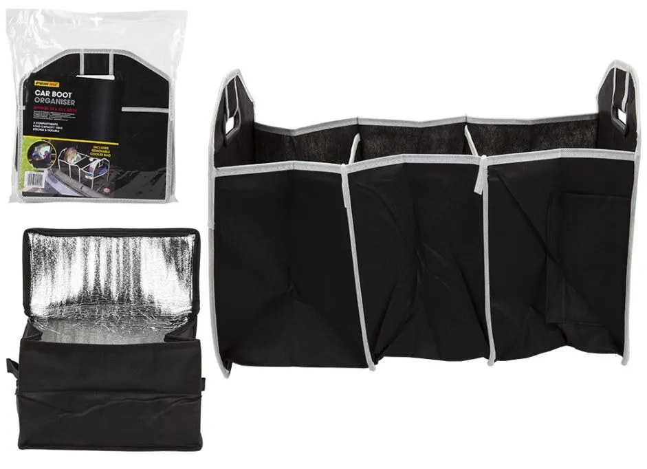This car boot organiser is sturdy with 3 large compartments ideal for keeping your boot accessories tidy and organised with the addition of a cooler bag is a handy addition to this item.