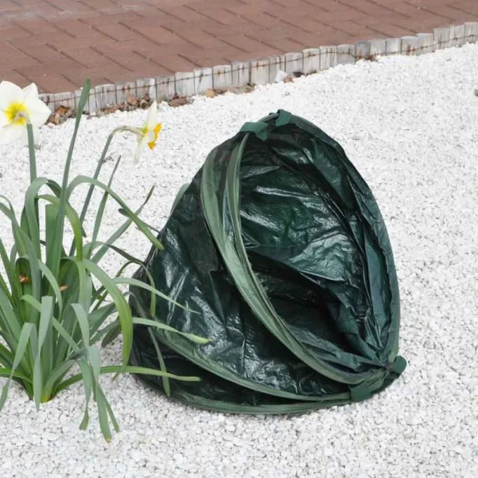 Heavy-duty Kingfisher pop-up garden refuse bag. Complete with carry handles. Size when open H48 x DIA44cm. 73L capacity. Collapsible for easy storage.