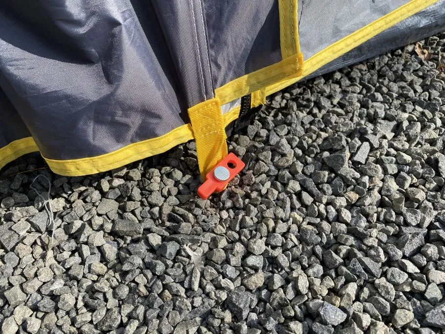 - Hand pump, guys, heavy-duty screw pegs, carry bag included