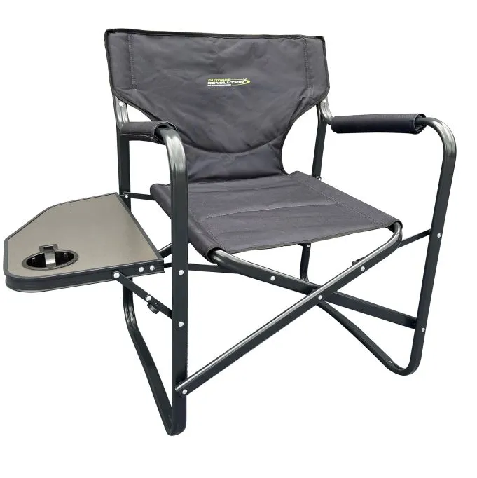 The Director Chair is a folding director style camp chair with a robust powder-coated steel frame and convenient fold-out table & cup holder.