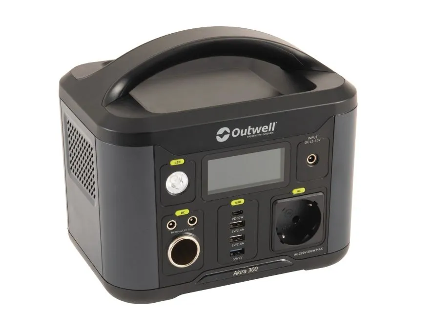 You’ll enjoy reliable portable power at your fingertips with the Outwell Akira 300 Power Station which can be recharged on the road from your vehicle battery.