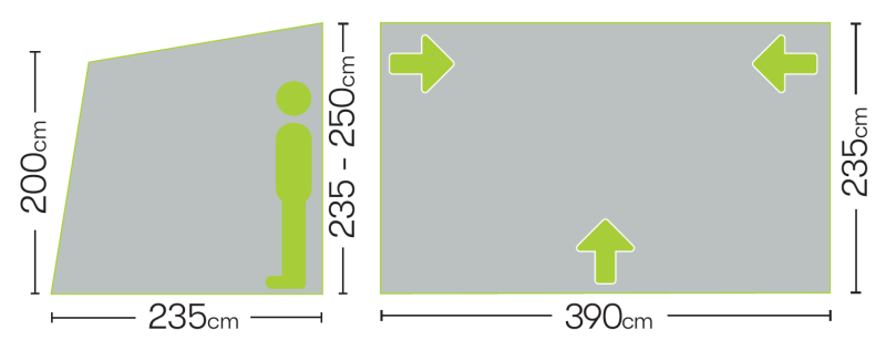 The awning is all about ease of use and value. It features an easy to use, minimal quick-fit pole system. The pitching is easy enough to be done by a single person if required. It uses the modern Quest Tec 150 fabric which is lightweight, quick drying and extremely waterproof making the awning easier to use and maintain. It is U.V. coated to help protect it from the harmful UV rays which helps extend its lifespan and gives you a U.P.F. rating of 50+ which is the highest possible giving you complete protection.